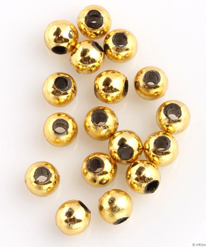 Akril gyöngy, fémes felületű, aranyszínű, gömb forma, 0.6 cm.