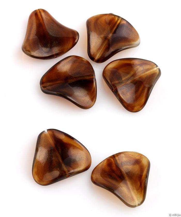 Hullámos, háromszögű akril gyöngy, barna, 2.5 cm. A háromszögű forma sarkai lekerekítettek.