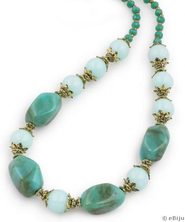 Szabálytalan formájú akril gyöngy, türkiz és barna, 2 x 2.8 cm