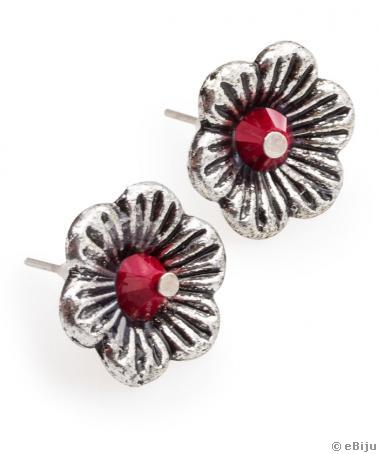 Virág akril gyöngkupak, fémes fényű, antikolt ezüstszínű, 1.3 x 0.6 cm.