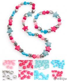 Háromszögletű akril gyöngy, türkiz-lila, 2.2 cm