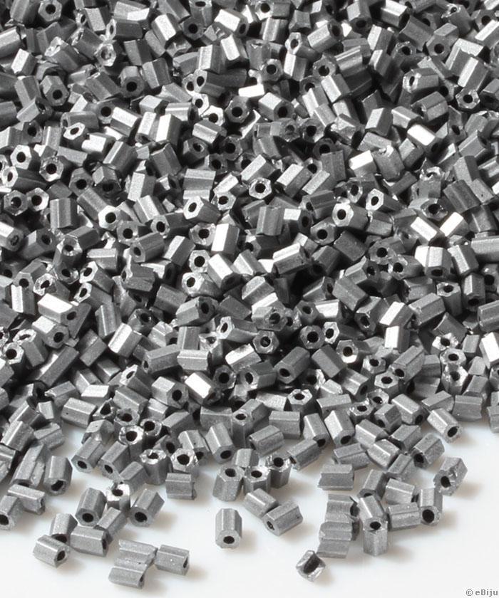 Szürke kásagyöngyök, hexagonális forma, 0.3 cm