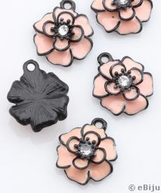 Rózsaszín virág medál, fekete festett fém, 2.2 x 1.8 cm