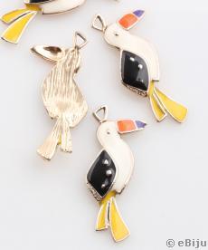 Tukán papagáj medál, zománcozott aranyszínű fém, 3.4 x 1.6 cm