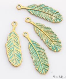 Türkiz toll medál, aranyszínű fém, 3.4 x 1 cm