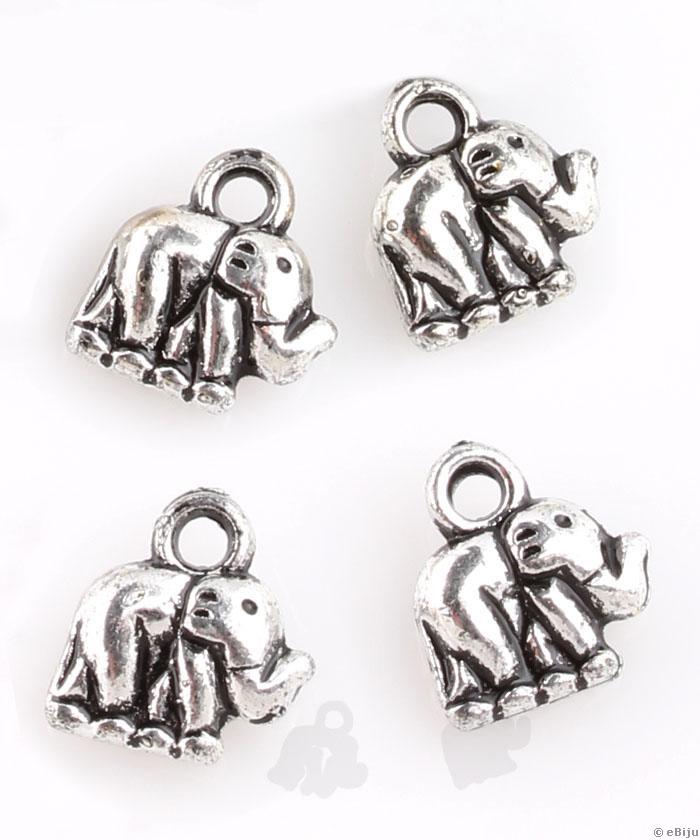 Elefánt függő dísz, charm típusú, fémes felületű, antikolt ezüstszínű akril, 0.9 x 1 cm.