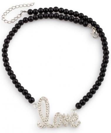 Love feliratos medál, kristályokkal, ezüstszínű fém, 4.2 x 3.3 cm.