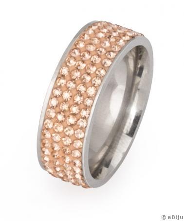 Shamballa típusú, barackrózsaszín gyűrű, rozsdamentes acél