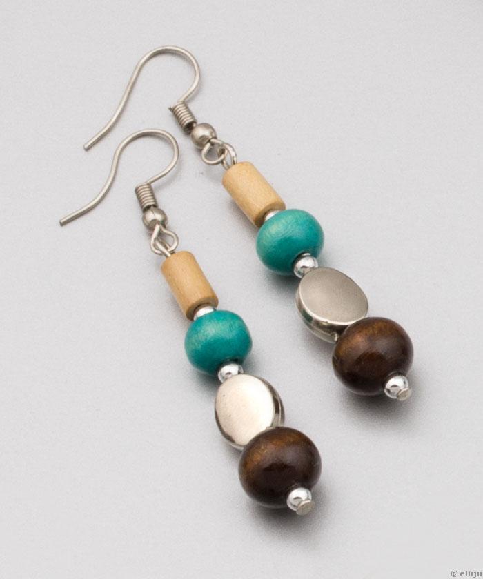 Fa gyöngyös fülbevaló (barna, türkiz és natúr színű) ezüstszínű akrillal.