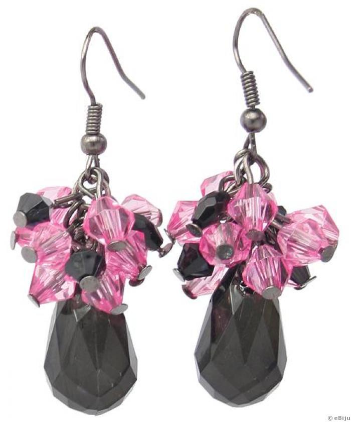 Fekete és rózsaszín szintetikus kristály fülbevaló
