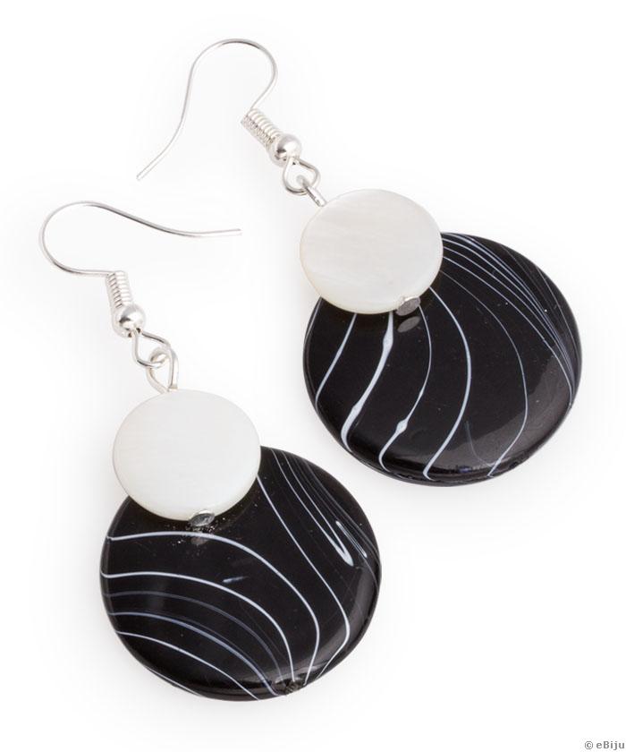 Gyöngyház fülbevaló, fehér vonalas fekete és fehér érmék
