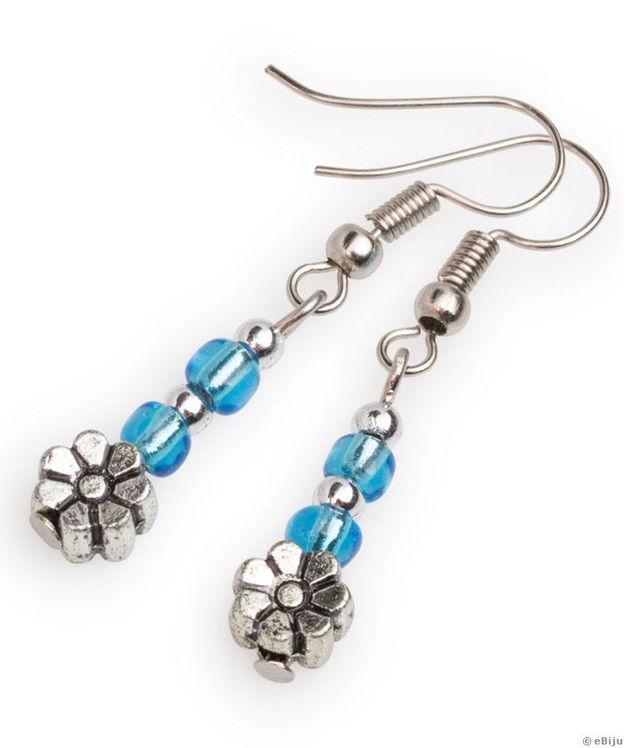 Kék, ezüstszálas kásagyöngy fülbevaló