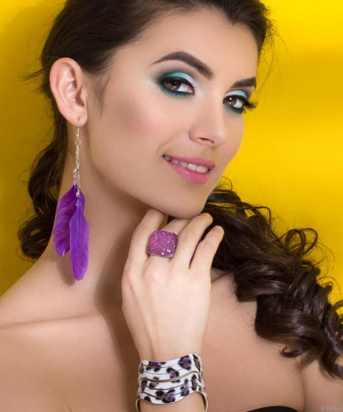 Lila toll fülbevaló, hosszúság: 13 - 14 cm, átmérő: 1.1 - 2 cm