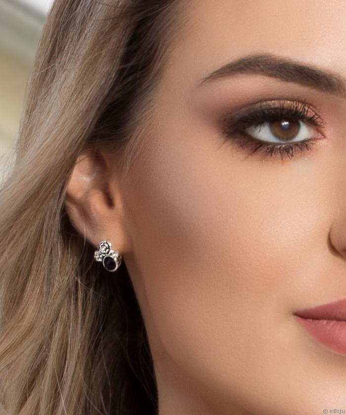Rózsa fülbevaló fekete és fehér kristályokkal, rézötvözet
