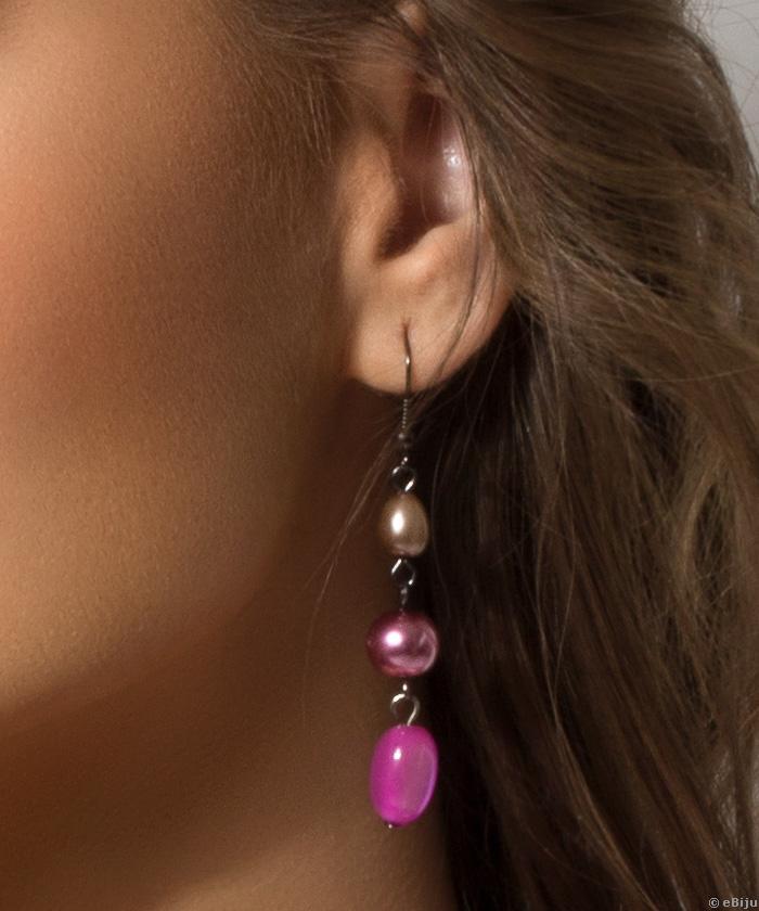 Fülbevaló, barna és halvány rózsaszín üveg és műgyanta gyöngyök.