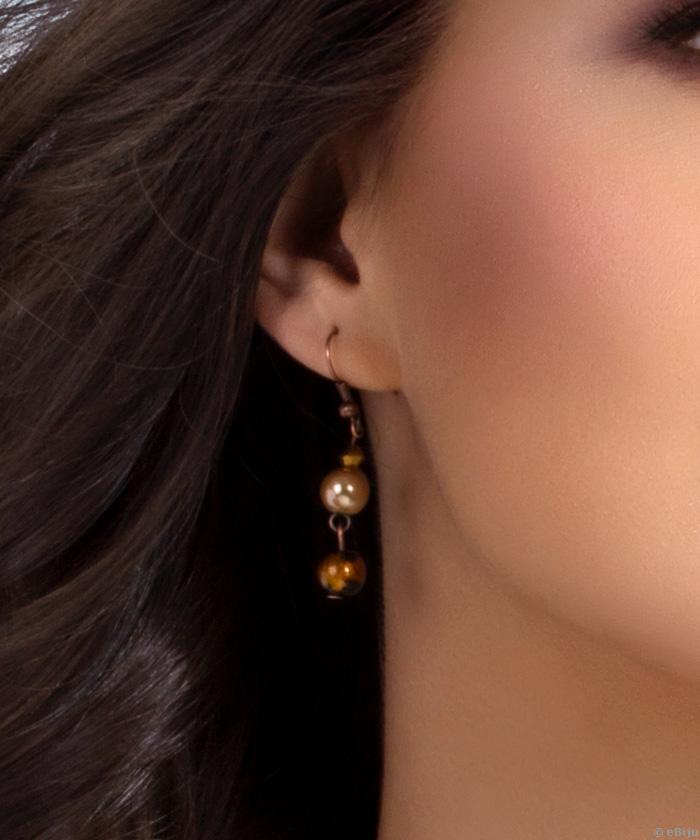 Üveggyöngyös fülbevaló, aranyszínű kristályokkal