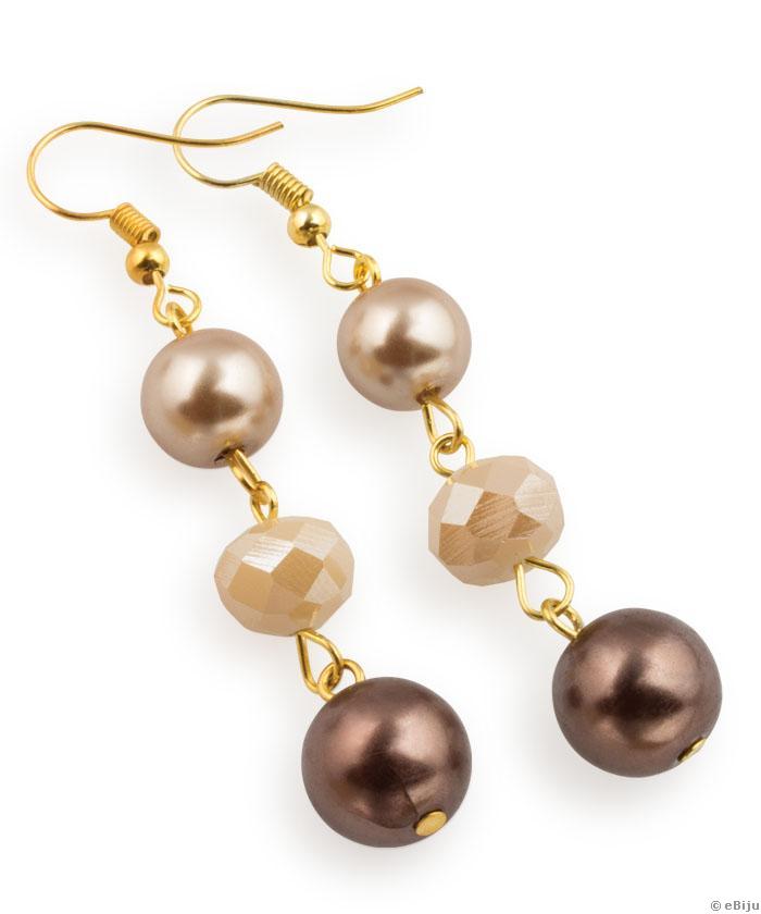Fülbevaló, barna és világosbarna üveggyöngyök mandulaszínű kristályokkal.