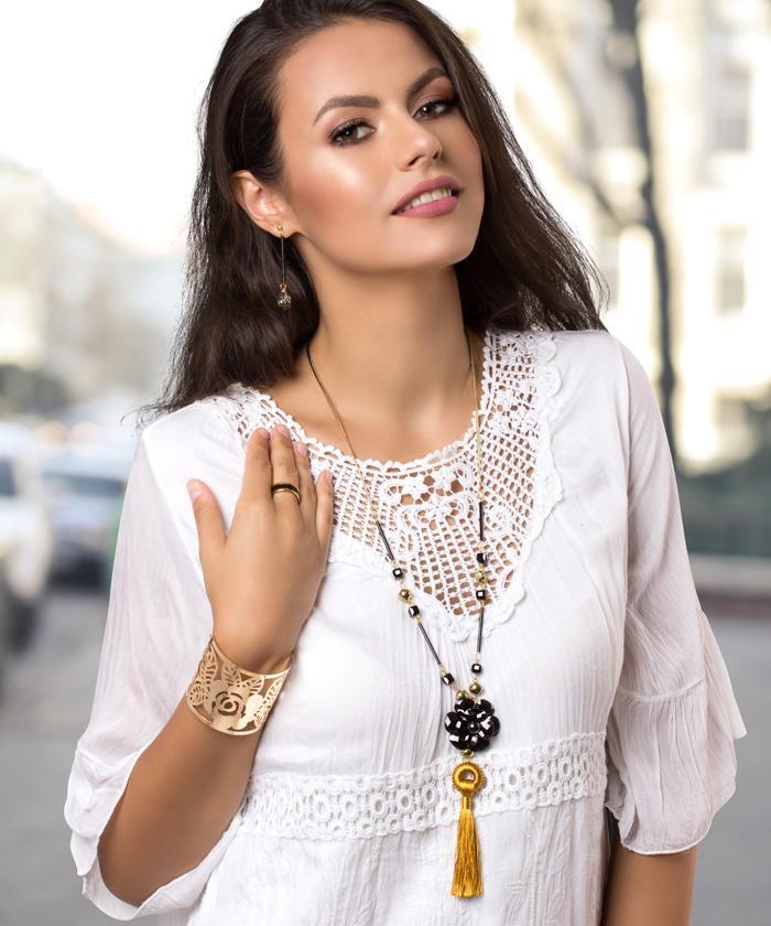 Fekete gyűrű fehér pettyekkel és aranyszínű csillámokkal