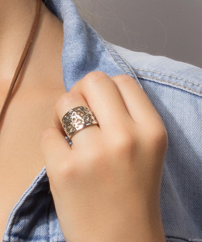 Ezüstszínű fém gyűrű virágmintás kivágással