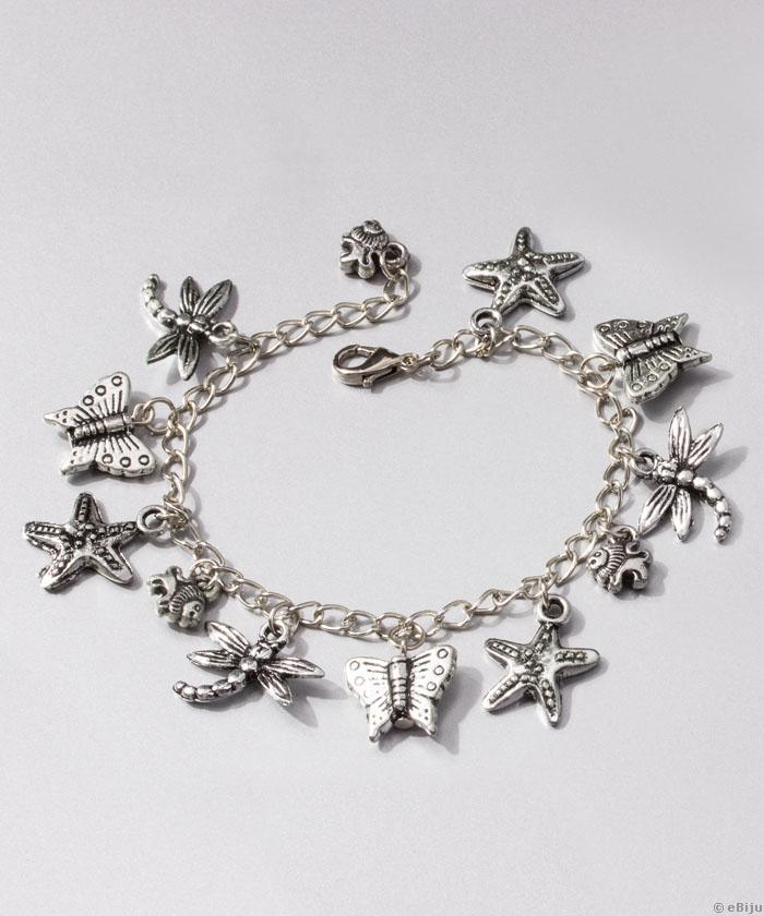 Állatkás karkötő: pillangó, szitakötő, teknősbéka, tengeri csillag