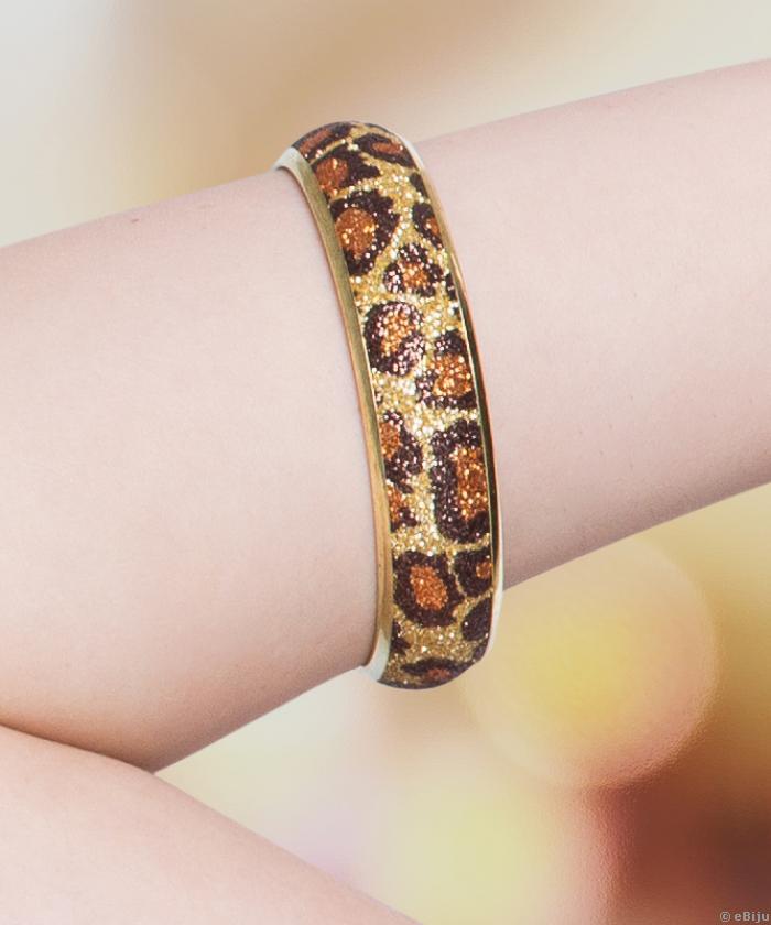 Aranyszínű-barna karkötő, textil aranyszínű fémmel kombinálva.