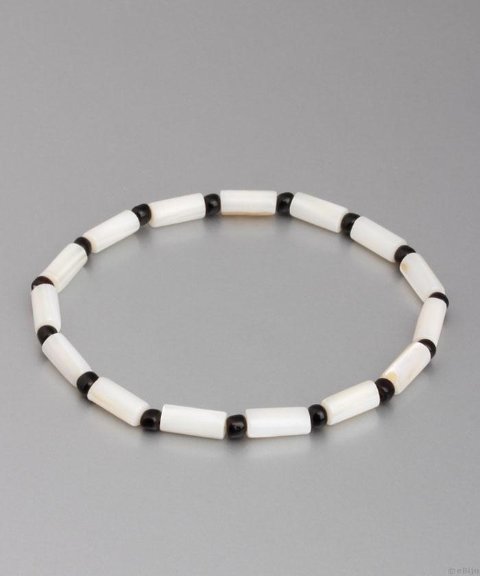 Fehér-fekete uniszex karkötő gyöngyházból és üveggyöngyökből
