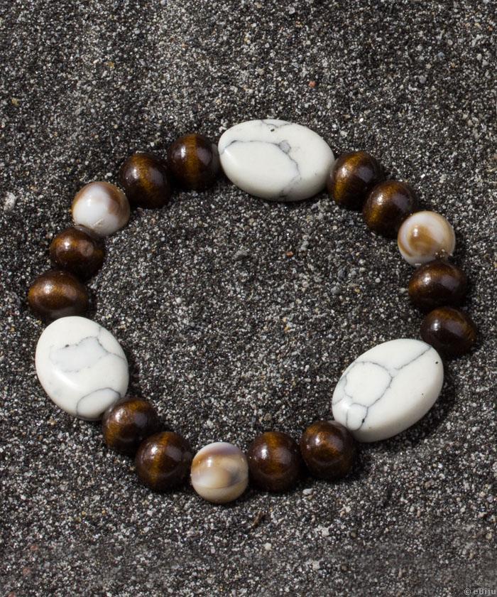 A Fehér howlit köves karkötő, fa gyöngyökkel