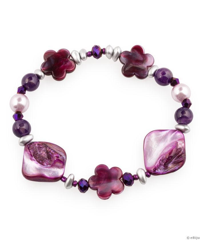 A Lila karkötő, gyöngyházzal, virágokkal és kristályokkal