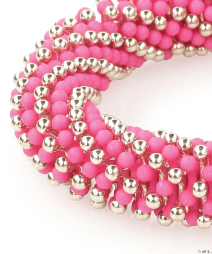 Rózsaszín karkötő ezüstszínű fémmel, elasztikus szálon.