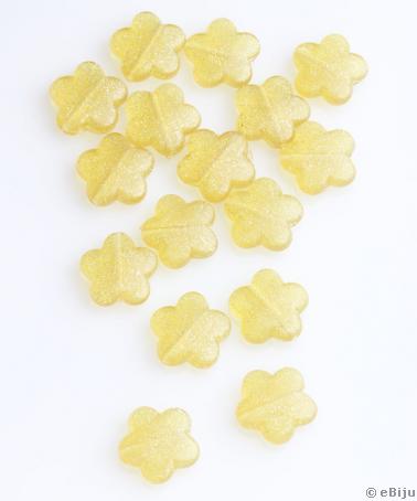 Virág akril gyöngy, világossárga, csillámokkal, 1.5 cm