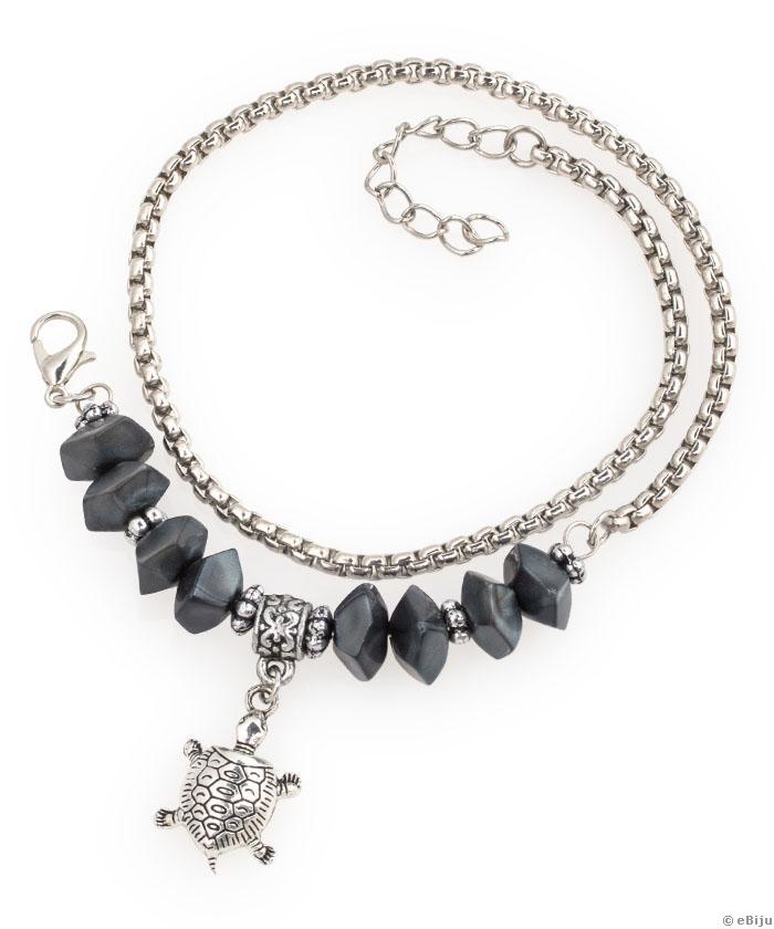 Teknősbéka karkötő, akrillal és ezüstszínű lánccal