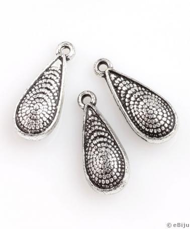 Könnycsepp függő dísz, antikolt ezüstszínű, 1 x 2.4 cm