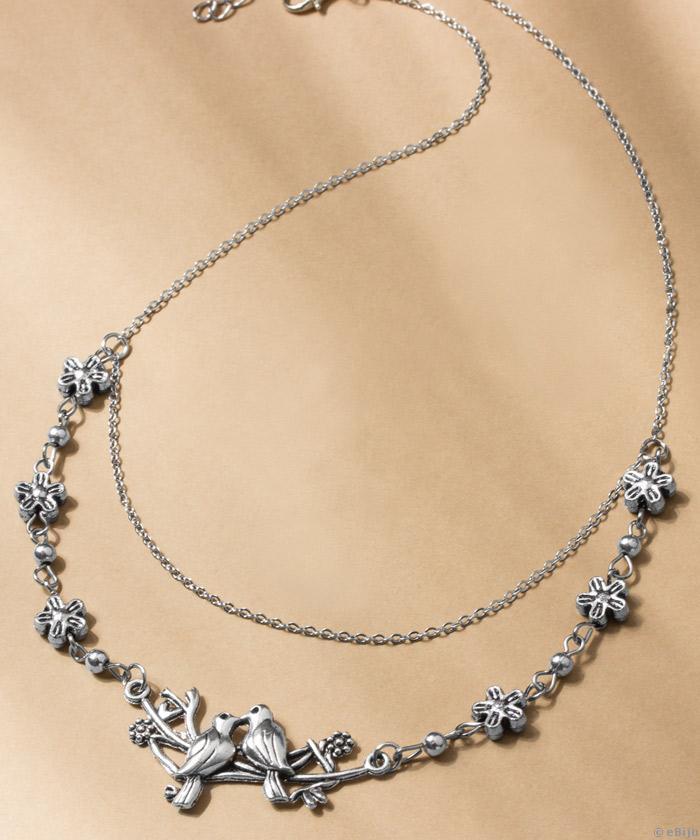 Duplasoros ezüstszínű nyaklánc, galambokkal