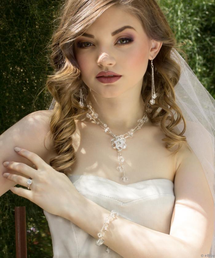 Fehér virág nyaklánc szintetikus kristályokból és gyöngyökből
