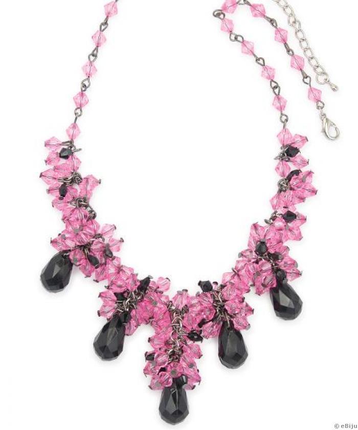 Fekete és rózsaszín szintetikus kristály nyaklánc