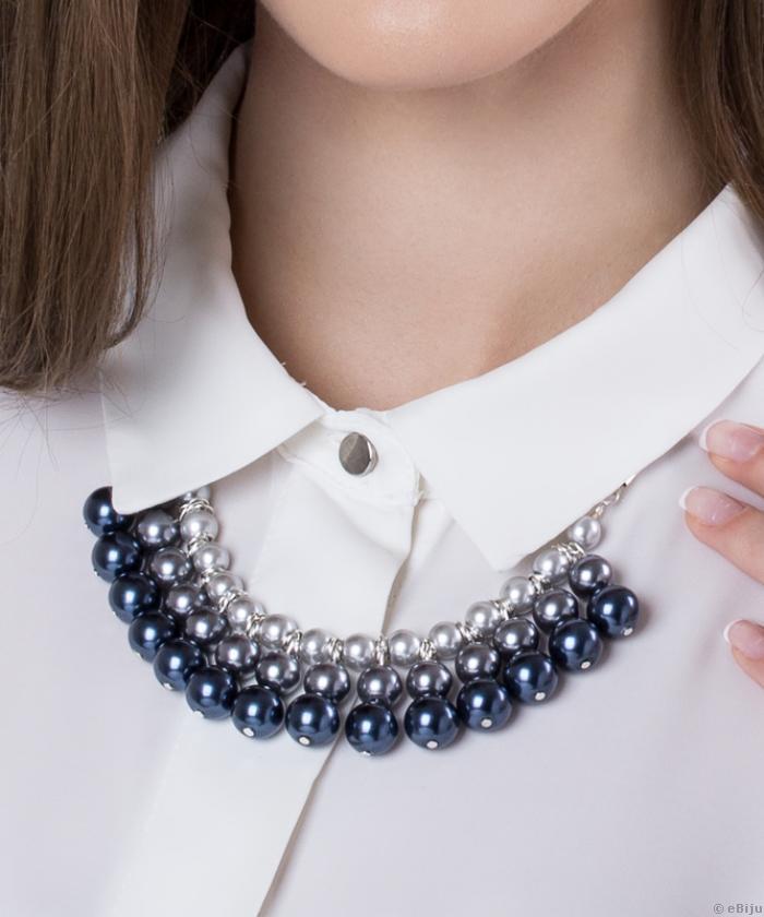 A kiegészítő kulcsszavai: szín és ritmika. A "Gray Pearls" nyakék vizuálisan kiegyensúlyozott, kellemes összhangot mutat, remek kiegészítő smart casual vagy bussiness öltözékekhez. Az utóbi évek felkapott divatja a statement nyakék, melyet sokszor úgy terveznek, hogy csak bizonyos ruhákkal és színekkel lehet őket viselni. A "Gray Pearls" statement nyakék viszont színeiben és anyagában remekül illik többfajta stílushoz és alkalomhoz.