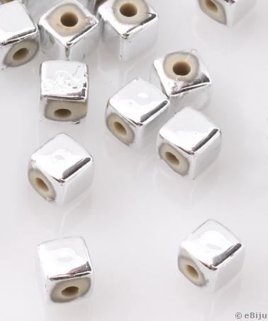 Távtartó gyöngy, világos ezüstszínű akril, kocka forma, 0.4 cm