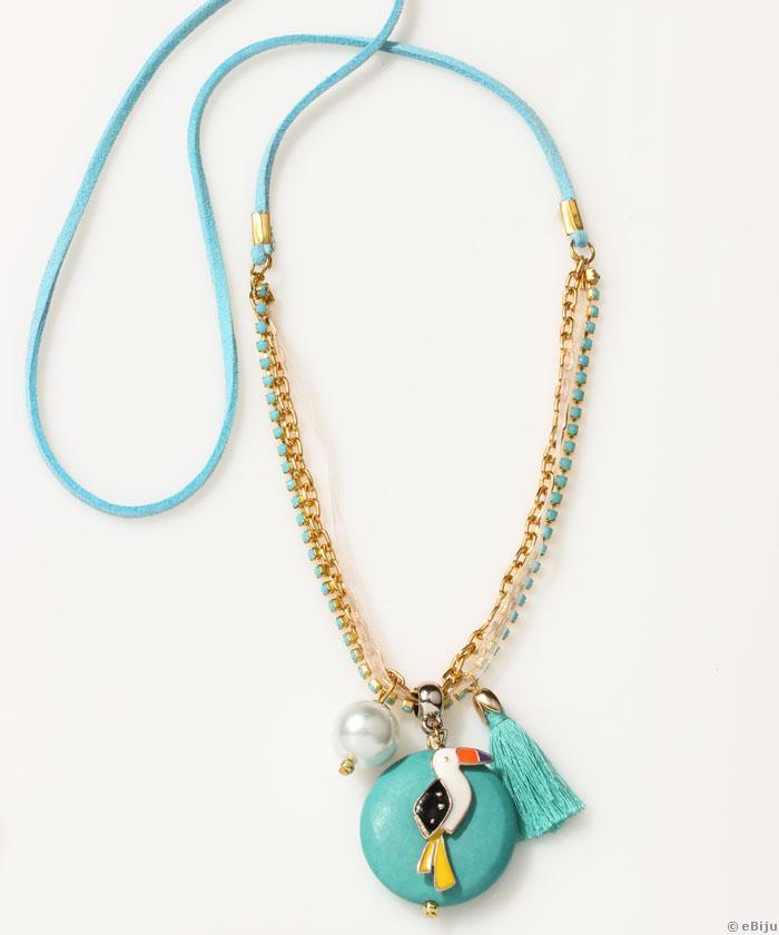 Türkizkék kristályos ékszerlánc, aranyszínű, 0.3 cm
