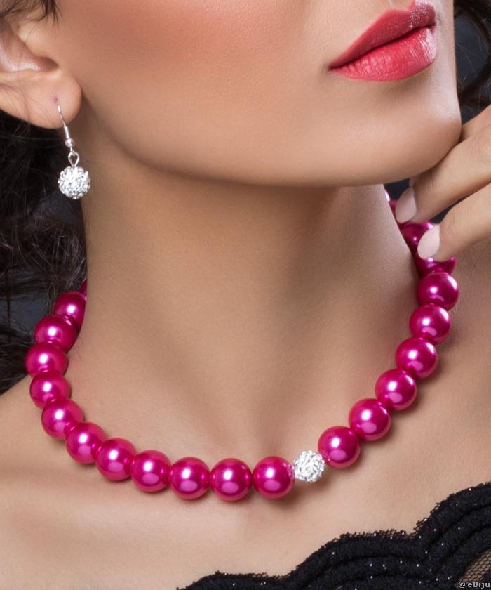'Pink Shine' nyakék, egy sor rózsaszín üveggyöngyből és egy shamballa típusú fehér sok kristályos gyöngyből készült. A shamballa gyöngy a karkötő központi részén helyezkedik el.
