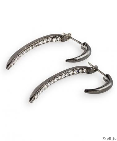 Nyaklánc/karkötő, kristályokkal kirakott koponya fömájú medállal, fekete és ezüstszínű gyöngyökkel, elasztikus szálon.