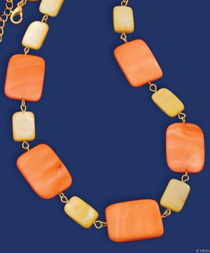 Sárga és narancssárga, négyszögletes és kerek gyöngyházból készült nyaklánc