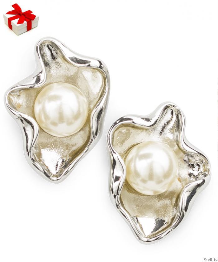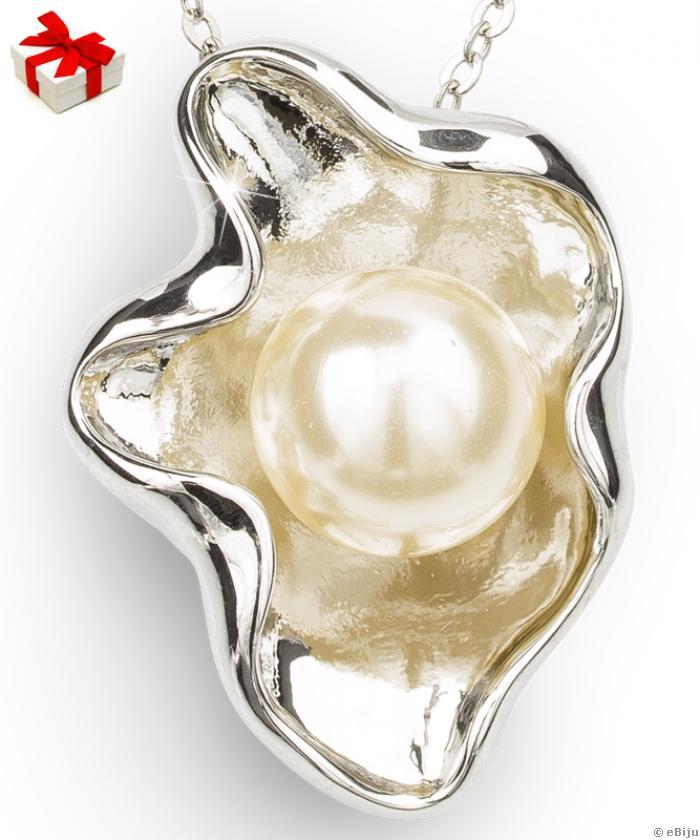 Swarovski kagylós medál és fülbevaló szett, ezüstszínű fémből, krémszínű üveggyönggyel.