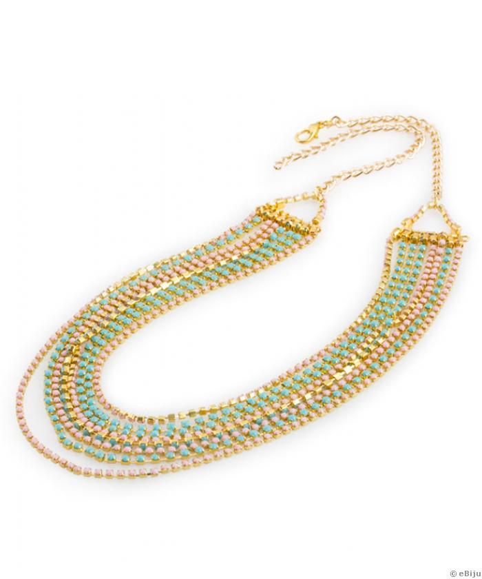 Rózsaszín kristályos ékszerlánc, aranyszínű, 0.3 cm