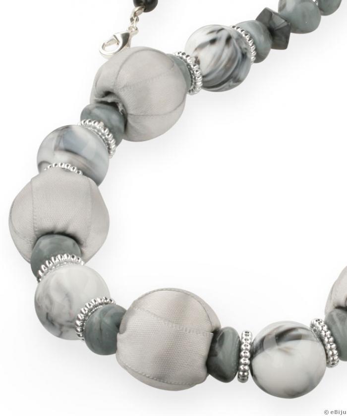 Szürke, textilből és szintetikus anyagból készült nyaklánc