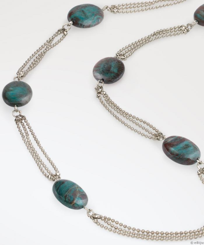 Türkiz kőből (festett, stabilizált) készült nyakék, ezüstszínű fémmel kombinálva, kő mérete: 1.20 x 1.63 cm.