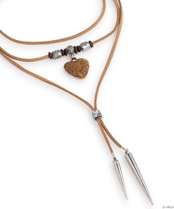 Világosbarna nyakék, szív medállal